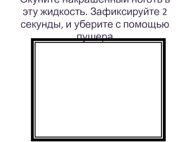 Слайд 8Окуните накрашенный ноготь в эту жидкость. Зафиксируйте 2 секунды, и уберите