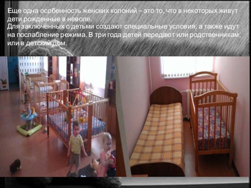 Для заключенных с детьми создают специальные условия, а также идут на послабление режима. В три года детей передают или родственникам, или в детский дом.