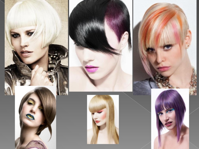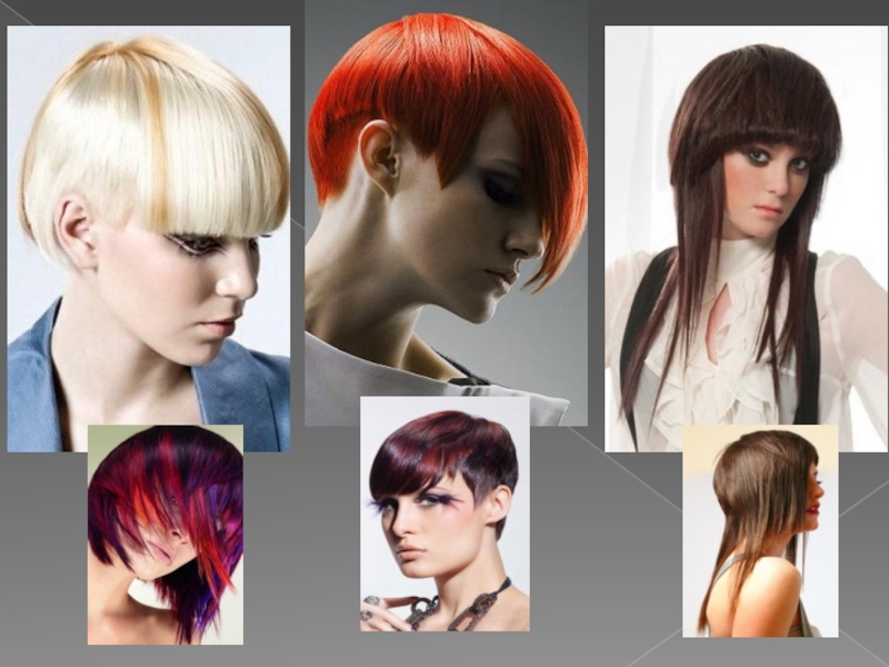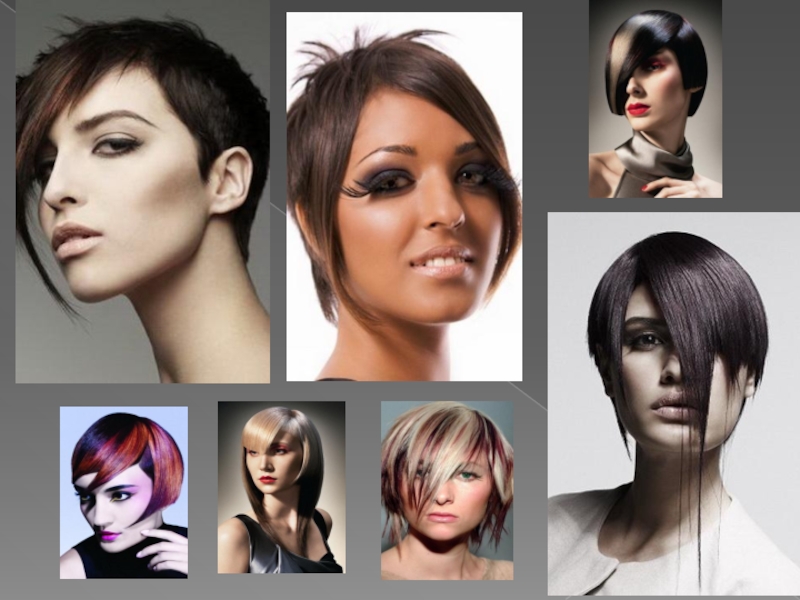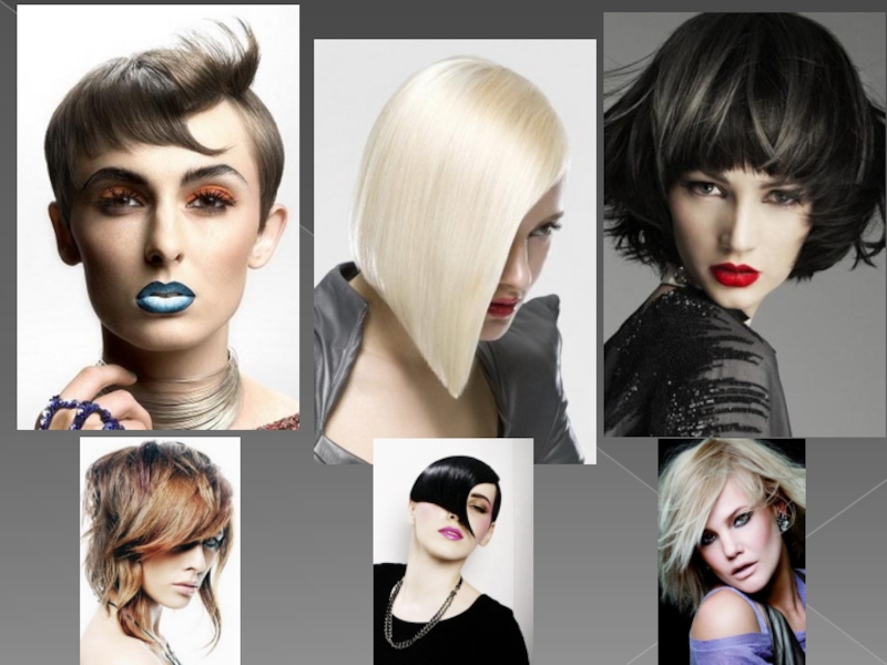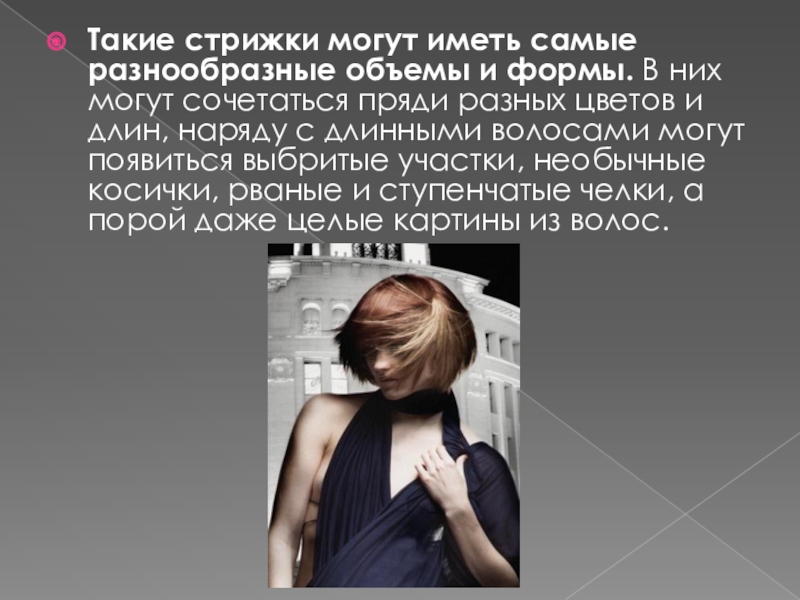 Слайд 8Такие стрижки могут иметь самые разнообразные объемы и формы. В них могут