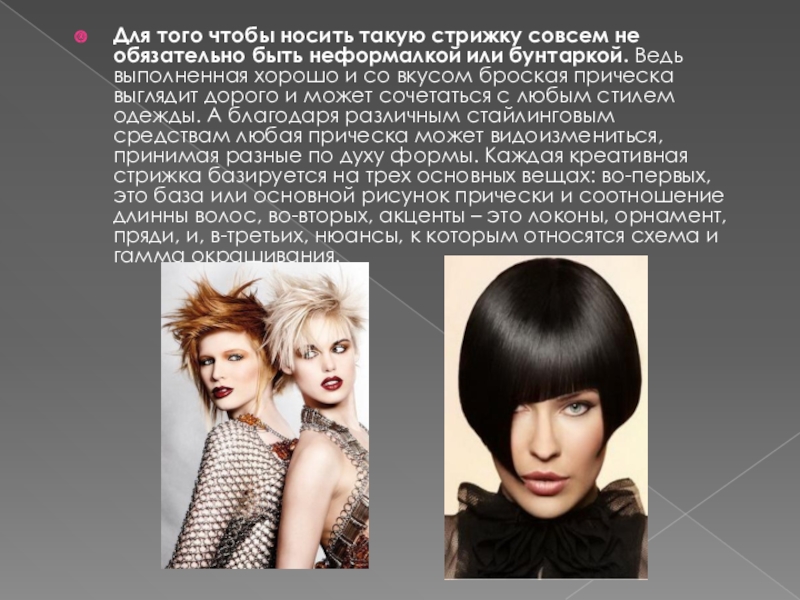 Слайд 9Для того чтобы носить такую стрижку совсем не обязательно быть неформалкой