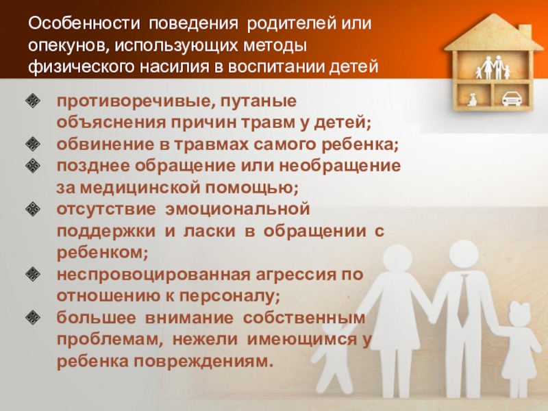 большее внимание собственным проблемам, нежели имеющимся у ребенка повреждениям.