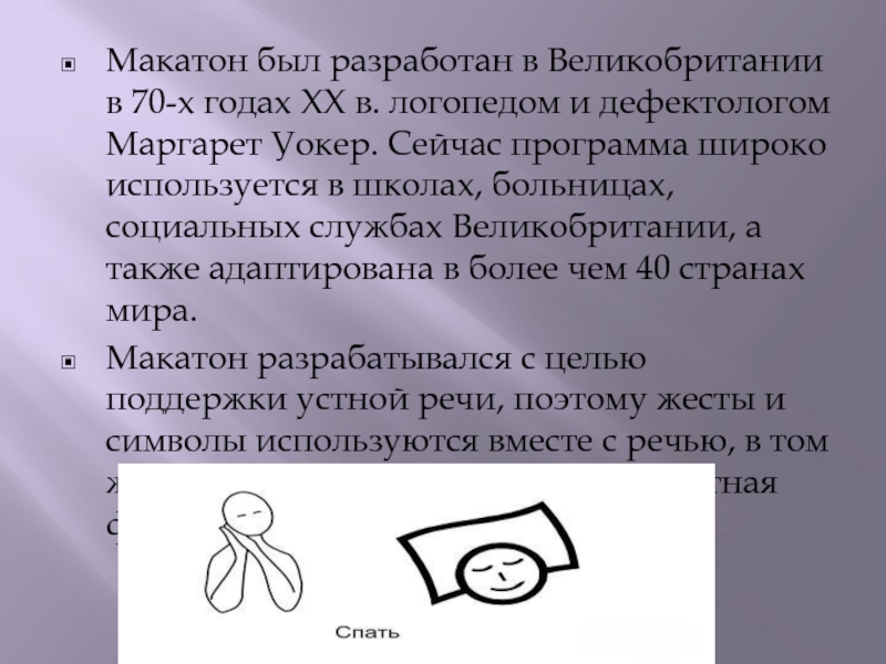 Макатон был разработан в Великобритании в 70-х годах ХХ
