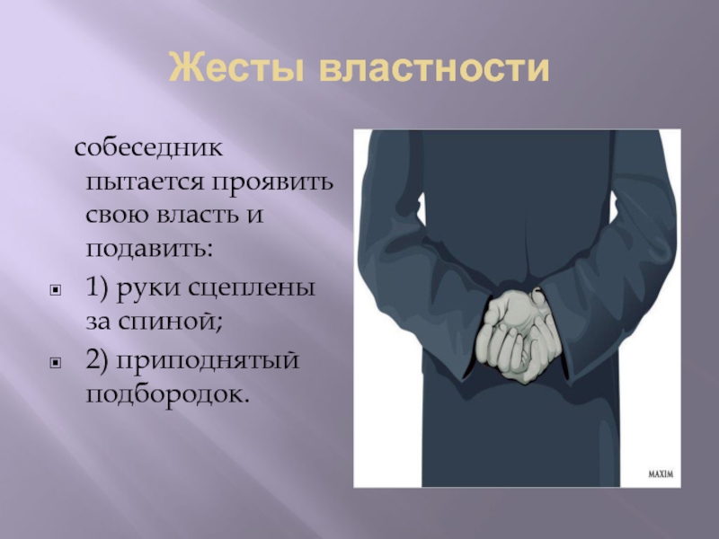 2) руки за спиной или в кармане — напряженное состояние, ощущение вины;