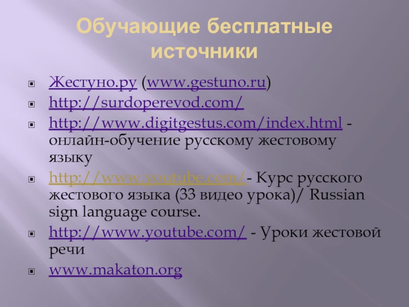 http://www.digitgestus.com/index.html - онлайн-обучение русскому жестовому языку