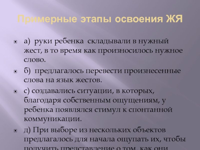 б) предлагалось перевести произнесенные слова на язык жестов.