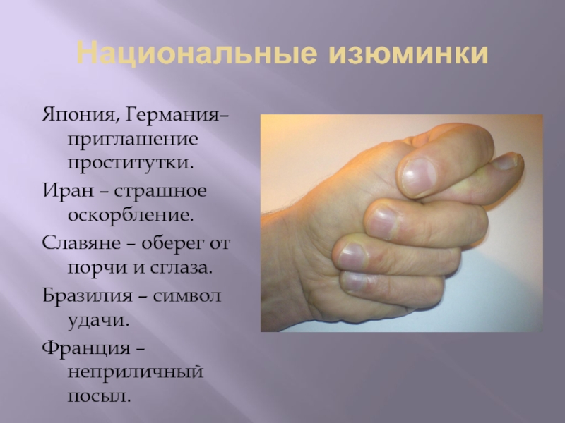 в разных условиях может означать разные эмоции. Для точной трактовки жеста имеет значение то, кем и в какой ситуации он выполняется, как именно выполняется, но в большинстве случаев смысл распространенных жестов ясен: