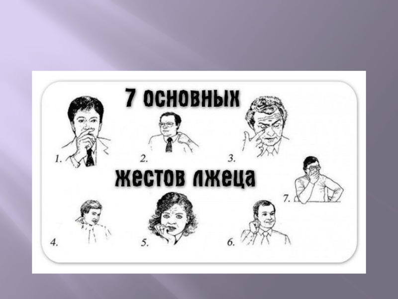 16) прикосновение во время речи к векам или носу — человек говорит неправду;
