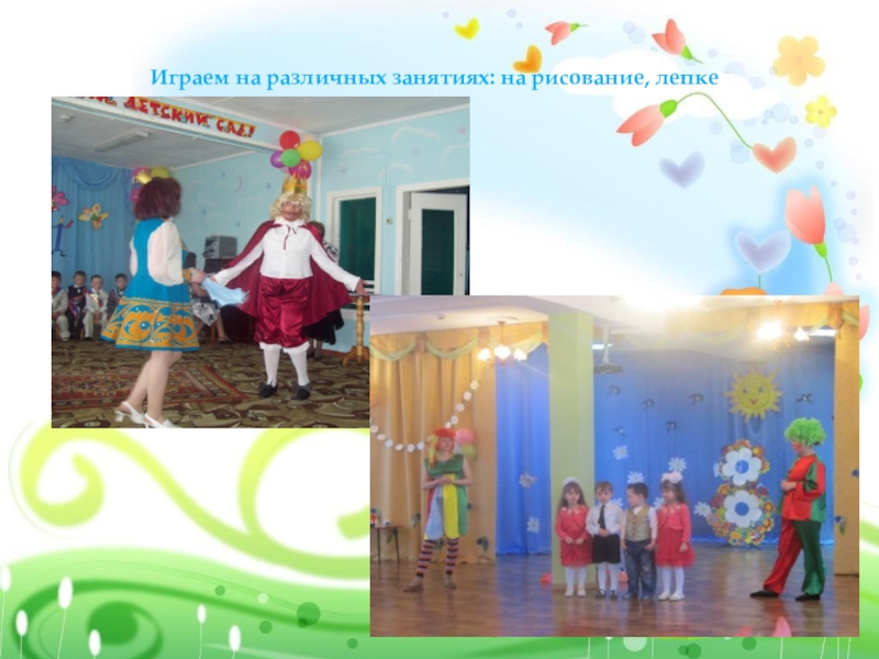Слайд 4Играем на различных занятиях: на рисование, лепке