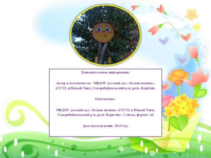 Автор и изготовитель: МБДОУ детский сад «Лесная поляна», 671732, п