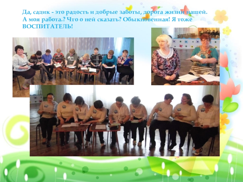 Да, садик - это радость и добрые заботы, дорога жизни нашей. А моя работа.? Что о ней