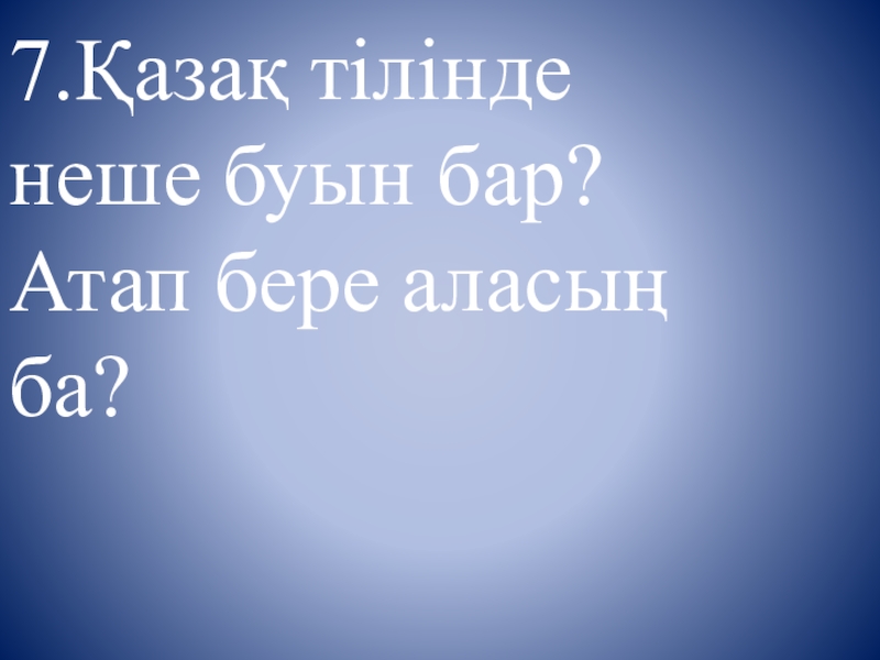 Слайд 357.Қазақ тілінде неше буын бар? Атап бере аласың ба?