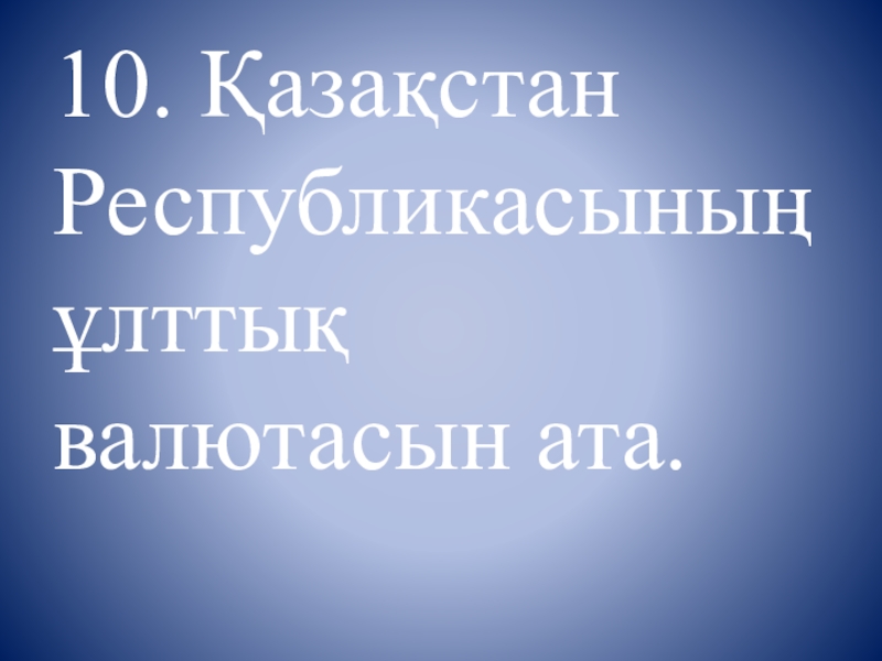 Слайд 13 10. Қазақстан Республикасының ұлттық валютасын ата.
