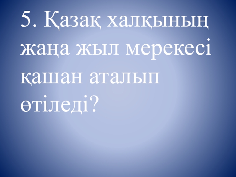 5. Қазақ халқының жаңа жыл мерекесі қашан аталып өтіледі?