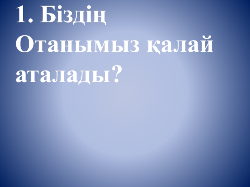 Слайд 4 1. Біздің Отанымыз қалай аталады?