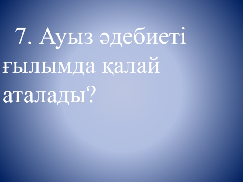 Слайд 33 7. Ауыз әдебиеті ғылымда қалай аталады?
