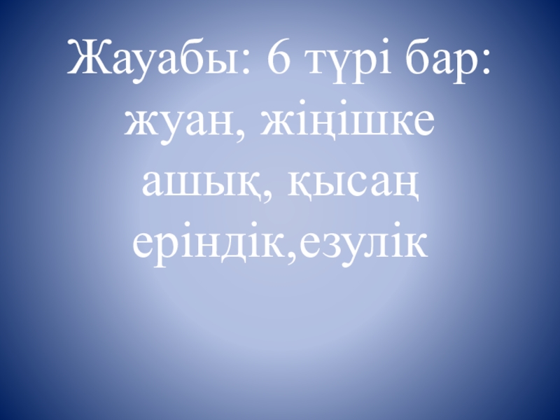 Слайд 22 Жауабы: 6 түрі бар: жуан, жіңішке ашық, қысаң еріндік,езулік