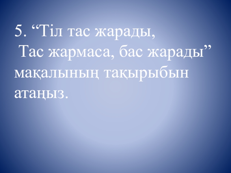5. “Тіл тас жарады,  Тас жармаса, бас жарады” мақалының тақырыбын атаңыз.