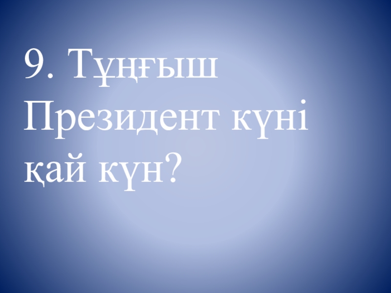 Слайд 12 9. Тұңғыш Президент күні қай күн?