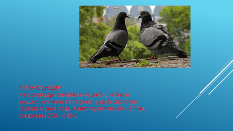 Күгәрсендәр ғаиләһенә ҡараған, күберәк күкшел, күк йәки аҡ төҫтәге, ҙур бөрләтәүле