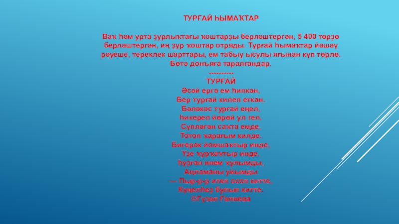 Слайд 8ТУРҒАЙ ҺЫМАҠТАР