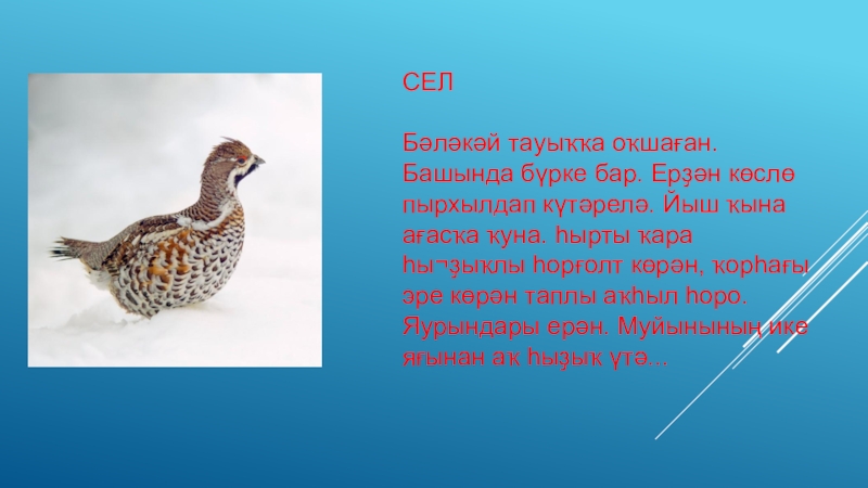 Сел,һуйыр,ҡор кеүек ҡоштар сатлама һыуыҡтар үткәнен тәрән ҡар эсендә көтәләр.Тик һайыҫҡан,ҡарға,турғайҙар