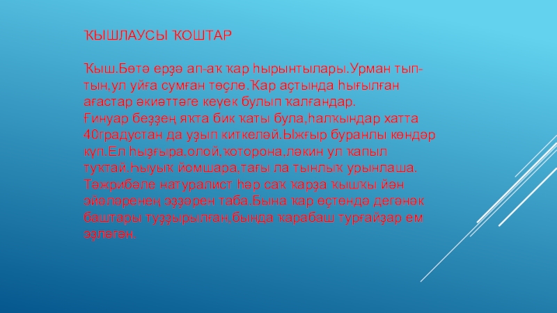 Слайд 3ҠЫШЛАУСЫ ҠОШТАР