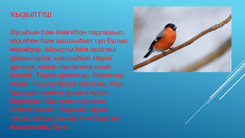 Слайд 2Ҡышлаусы ҡоштар - зимующие птицы