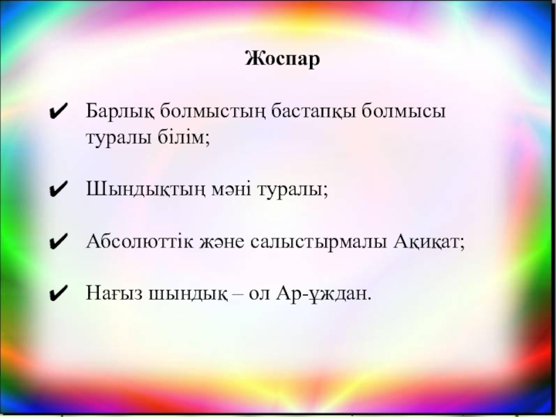 Ақиқат, дұрыс әрекет, ішкі тыныштық, қиянат жасамау, сүйіспеншілік