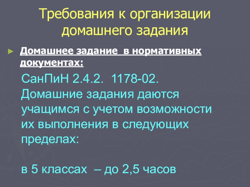 Домашние задания даются учащимся с учетом возможности их выполнения в следующих пределах: