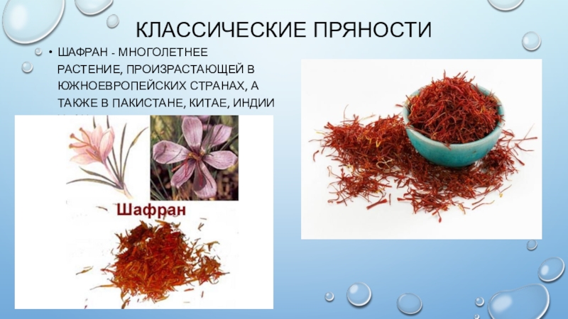 ♦ цветы и их части — гвоздика, шафран;