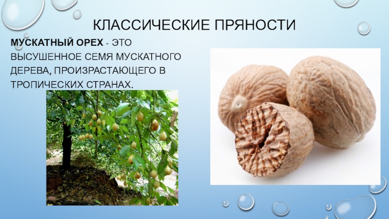 ♦ семена — горчица, мускатный орех, мускатный цвет;