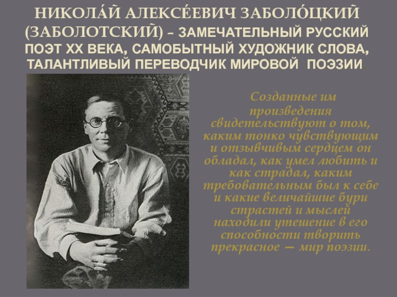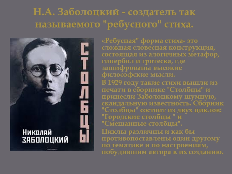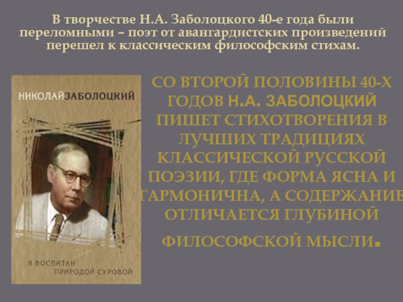 В творчестве Н.А. Заболоцкого 40-е года были переломными – поэт от авангардистских произведений перешел к классическим философским стихам.