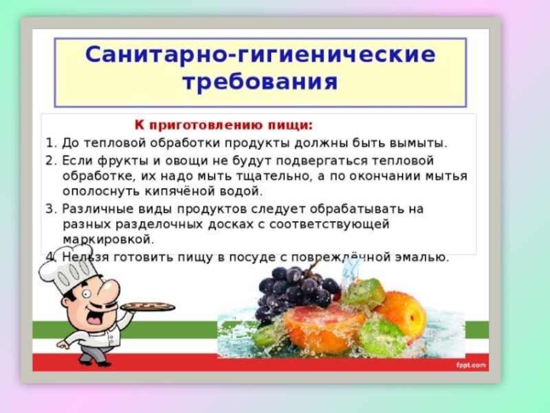 Презентация, доклад на тему Знание правил гигиены при приготовлении пищи