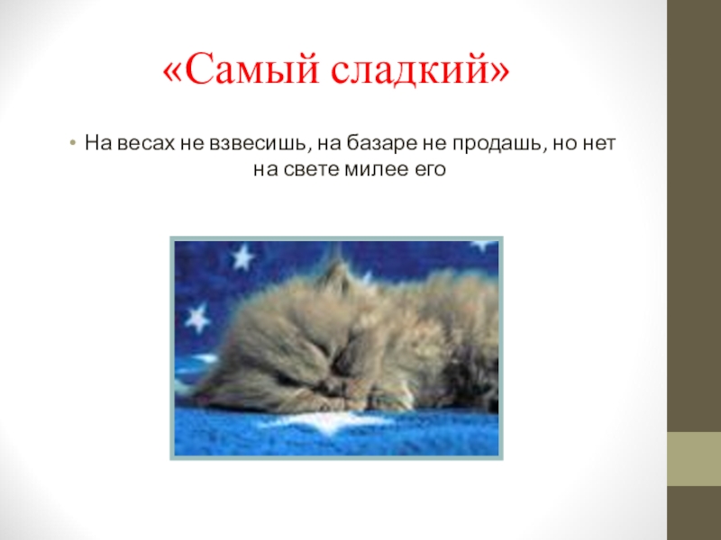 «Самый сладкий»На весах не взвесишь, на базаре не продашь, но нет на свете милее его