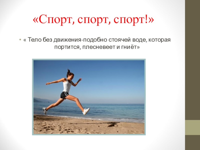 «Спорт, спорт, спорт!» « Тело без движения-подобно стоячей воде, которая портится, плесневеет и гниёт»